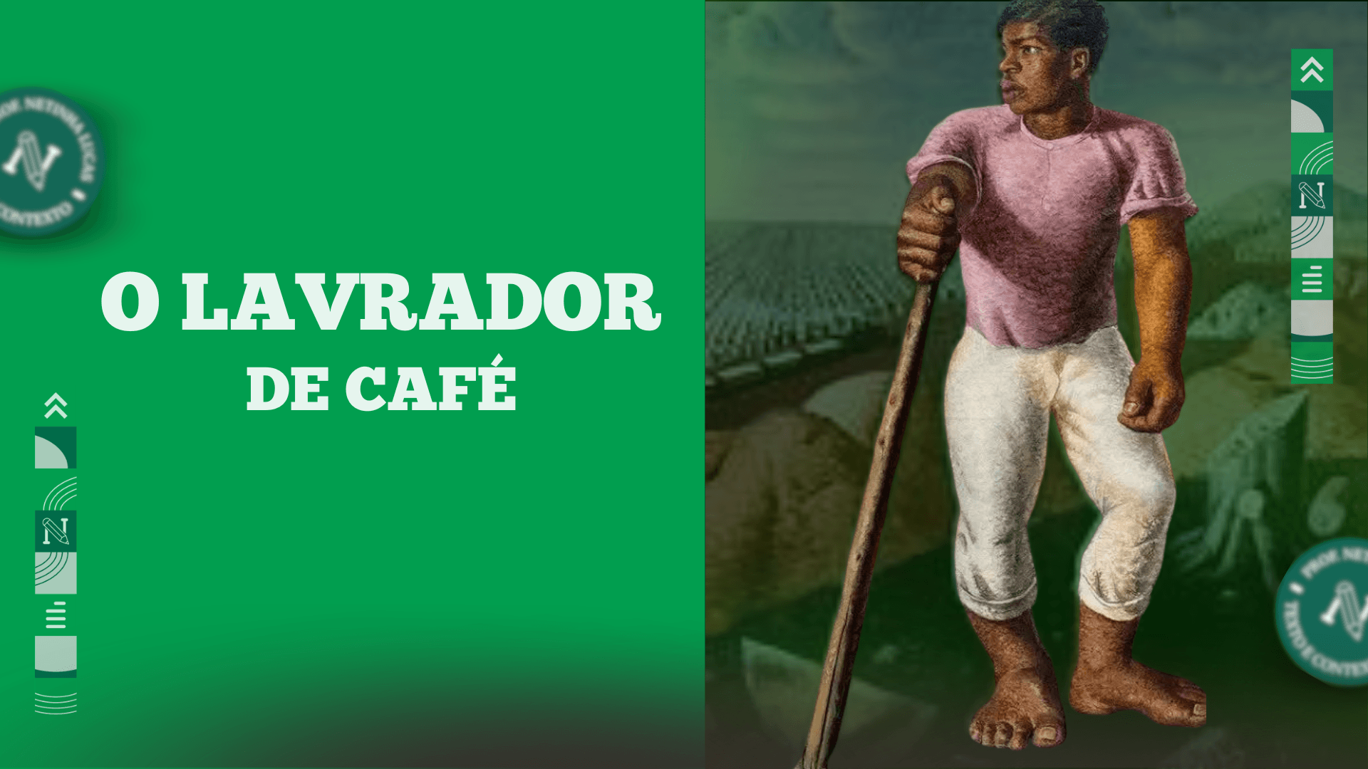 O Lavrador de Café, de Candido Portinari, é uma das telas mais representativas do artista, isso porque é considerada um retrato do trabalhador brasileiro, sobretudo o do meio rural. O tema do cafezal é recorrente na trajetória artística de Portinari, pois ele tinha a preocupação em exibir a realidade brasileira, dando enfoque ao povo e suas mazelas. Podemos considerar a figura retratada como um símbolo do homem do campo que trabalha em uma terra que não é sua, vendendo sua força de trabalho para o dono do latifúndio, no caso um fazendeiro e empresário do café. No contexto em que a tela foi pintada, o Brasil produzia café em larga escala para exportação, e, apesar da crise 1929 ter impactado o mercado brasileiro, a produção ainda era bastante lucrativa para os barões do café. Entretanto, as pessoas que plantavam e colhiam os grãos viviam em condições precárias.
