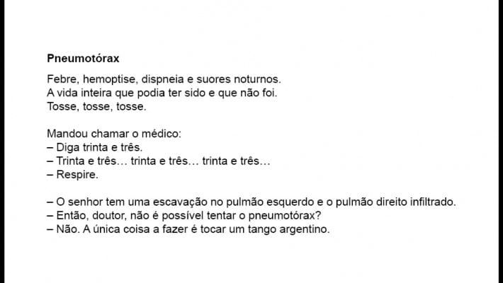 Referências: https://www.culturagenial.com/poema-pneumotorax-manuel-bandeira/