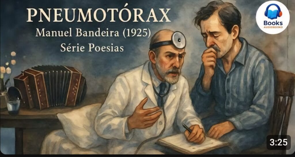 Publicado em 1930, no livro Libertinagem, o poema Pneumotórax, uma das obras-primas de Manuel Bandeira (1886-1968), se tornou um clássico do modernismo brasileiro.Em poucos versos vemos a história do eu-lírico que apresenta problemas pulmonares e não encontra uma saída possível para a solução do seu problema. Com uma dose de humor e ironia, Bandeira termina o seu poema com uma conclusão inesperada.